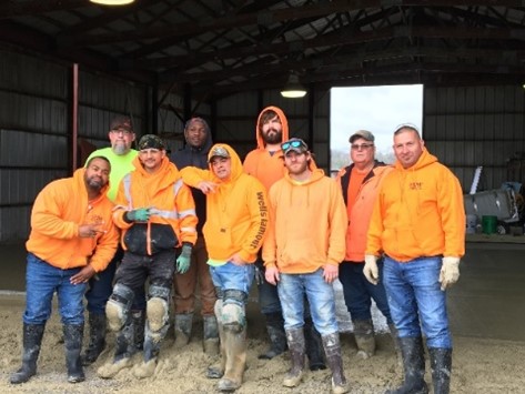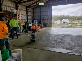 New Barn Floor The gravel was removed in the back half of the barn and a new concrete slab poured. The Plasterers and Cement Masons Local 692’s Apprenticeship paid for the concrete and donated the labor to install the new floor. Volunteers from Laborers Local 213 and Brooks Construction Company, Inc. also joined in.