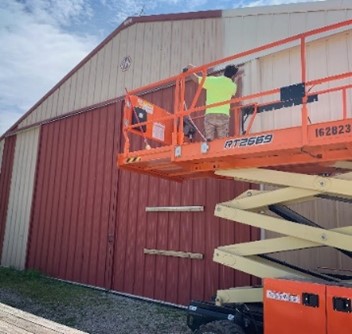 Barn Painted All painting was done by Strahm Group – Local Painters Local 469 volunteer. Sherwin Williams supplied the paint at a discount and MacAllister Machinery donated the use of the lift.